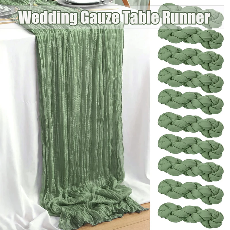 This cheesecloth table runner is made from high quality premium gauze table runner with wrinkled gauze fabric. It is soft while also being romantic, delicate, and flowy, will work well in a rust,bohemian, farmhouse, or contemporary setting.