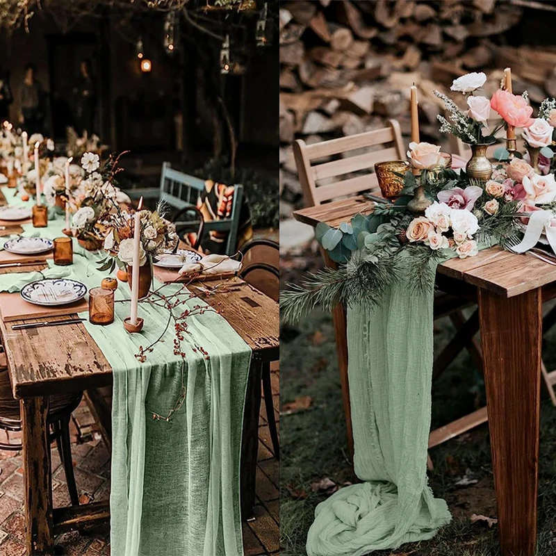 - Sage Green Table Runner: Cotton Gauze Table Runner