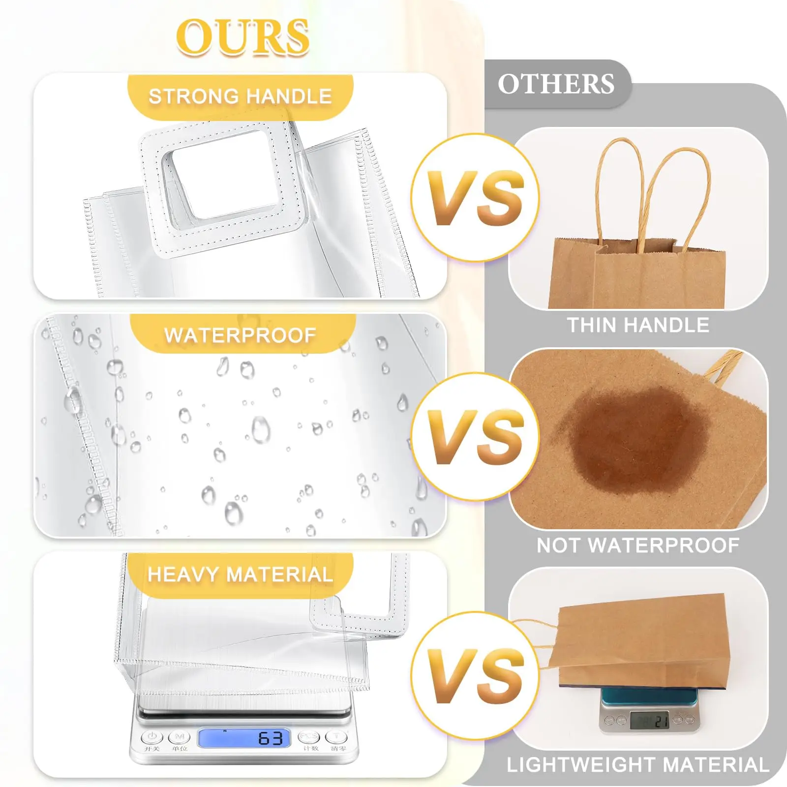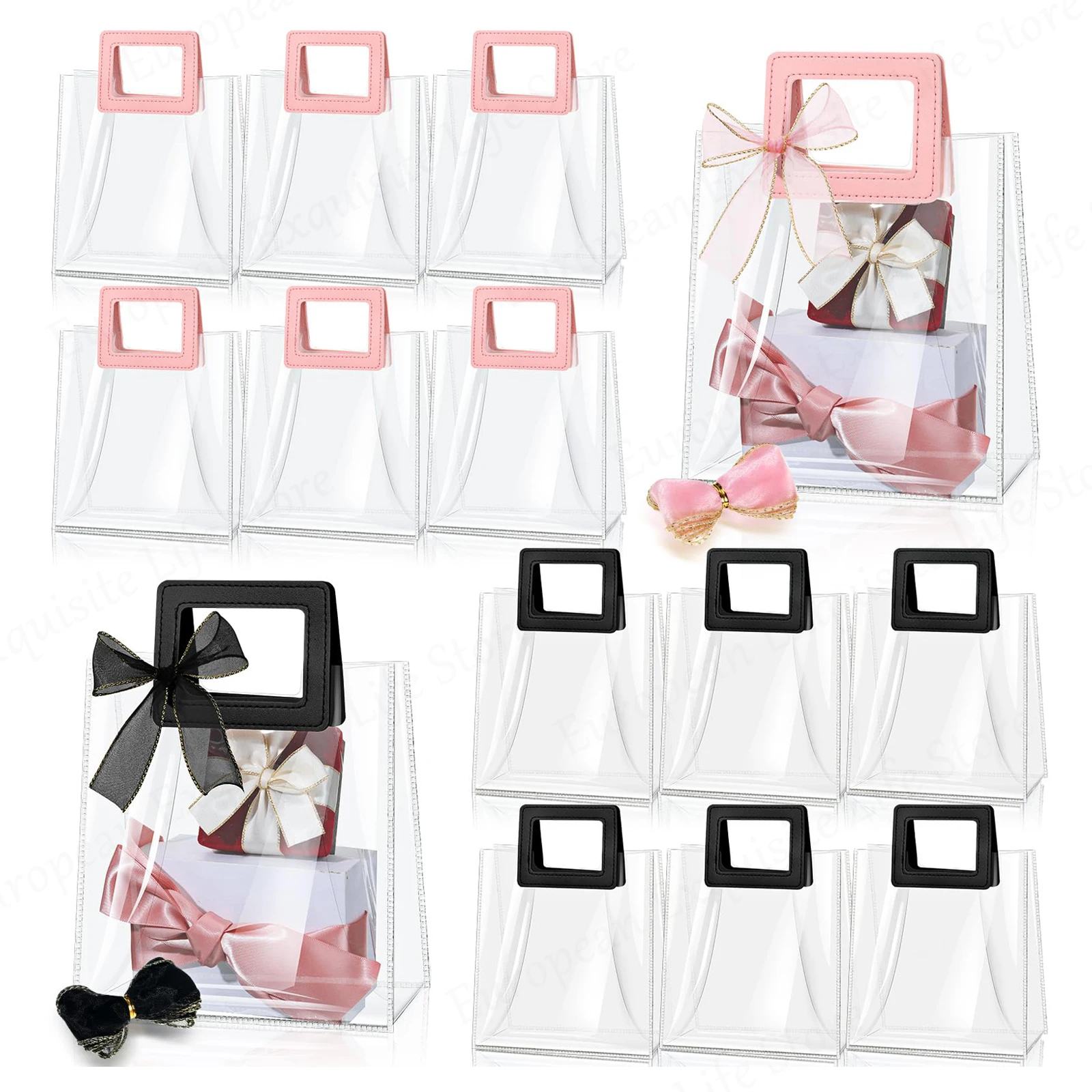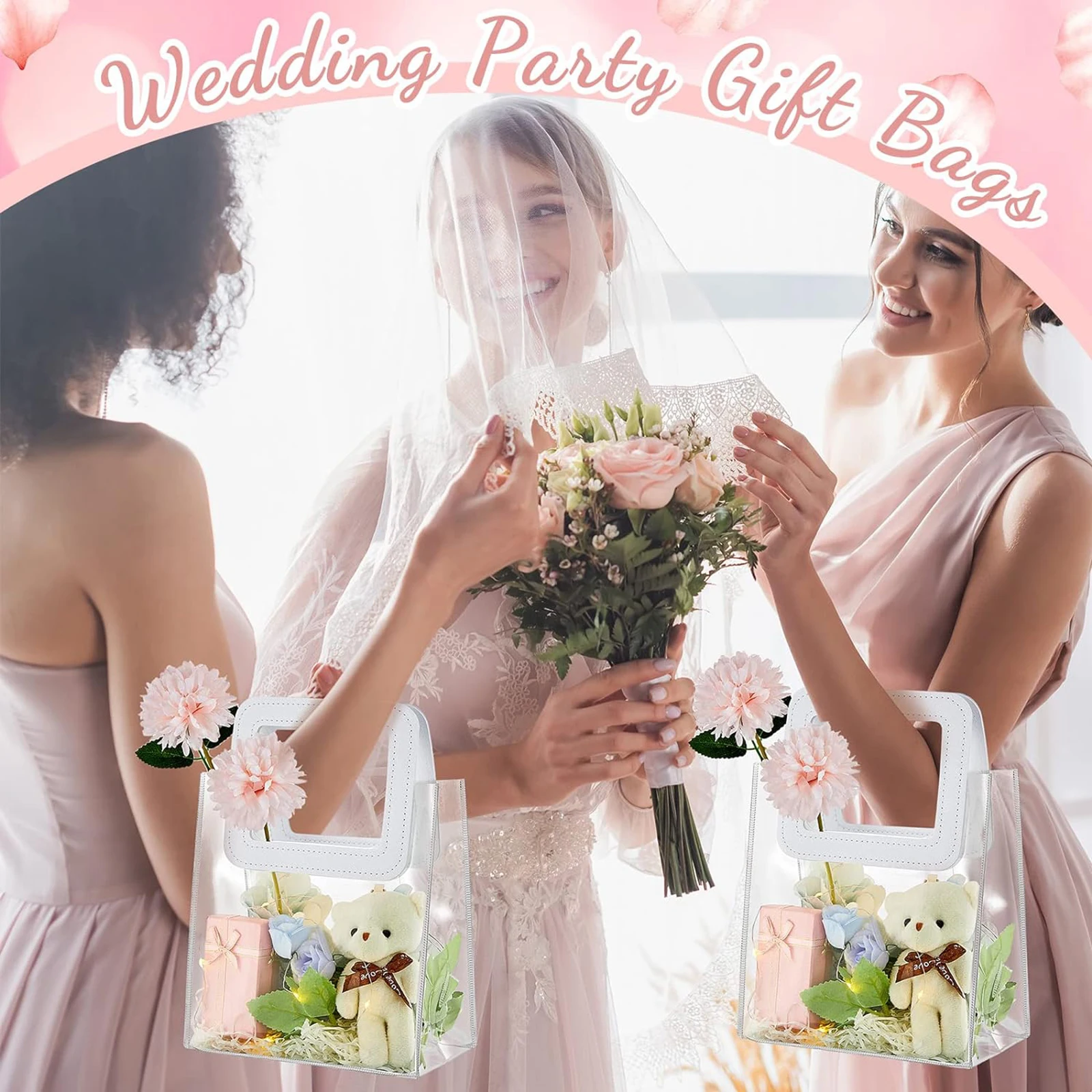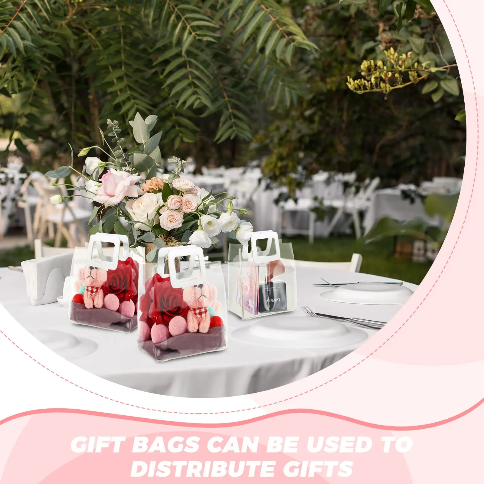 20/40/80Pcs Wedding Transparent Gift Bags with Handles PVC Wrap Bags Reusable Heavy Duty Tote Bags for Bridal Party Decor