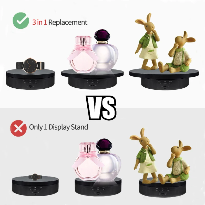3 in 1 Electric Rotating Display Stand 360 Degree USB/Battery Turntable Holder Jewelry Display Stand Base for Photography Shoot