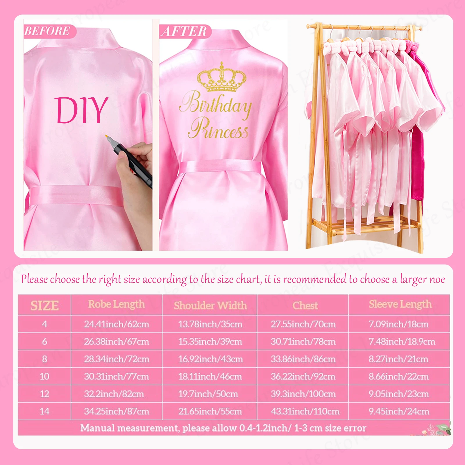 6/10Sets Spa Party Robes for Girls Kids Birthday Party Favors Gift Satin Bathrobe Kimono Robe Sleepover Party Favors Supplies