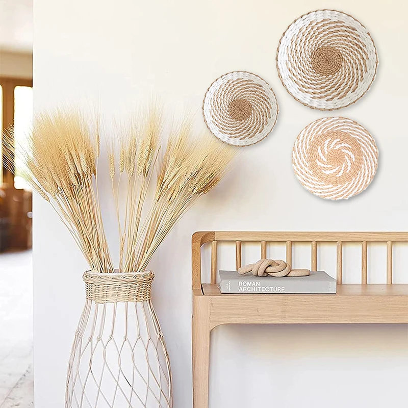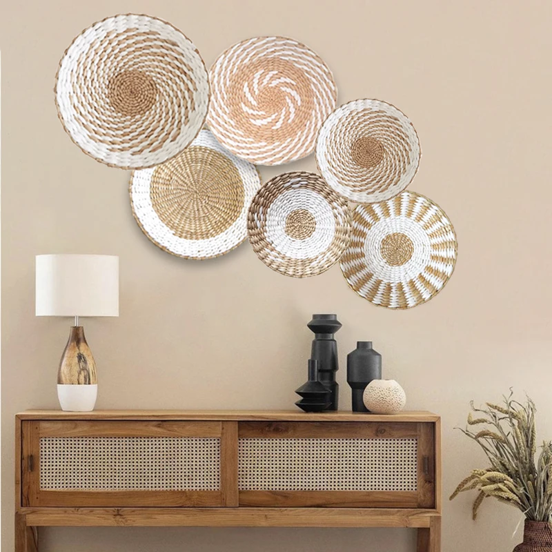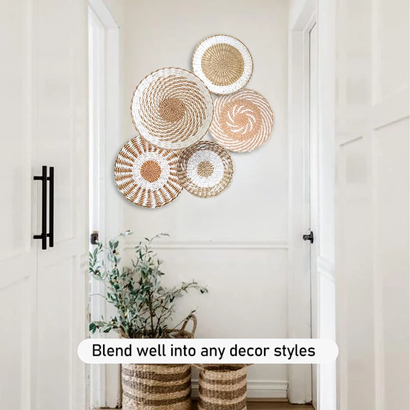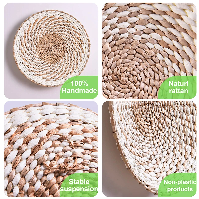 Boho Seagrass Hanging Wall Basket Decor Set of 5 Handmade Woven Round Plate Wall Decoration Craft Home Art Wall Hanging Ornament