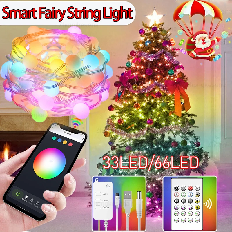 Tuya WiFi Smart Fairy Lights Outdoor Waterproof RGB String Lights USB APP Control Music Garland Lights With Alexa Google Home
